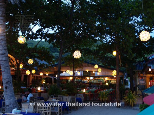 Abendlich beleuchtetes Restaurant am Ao Phai Strand